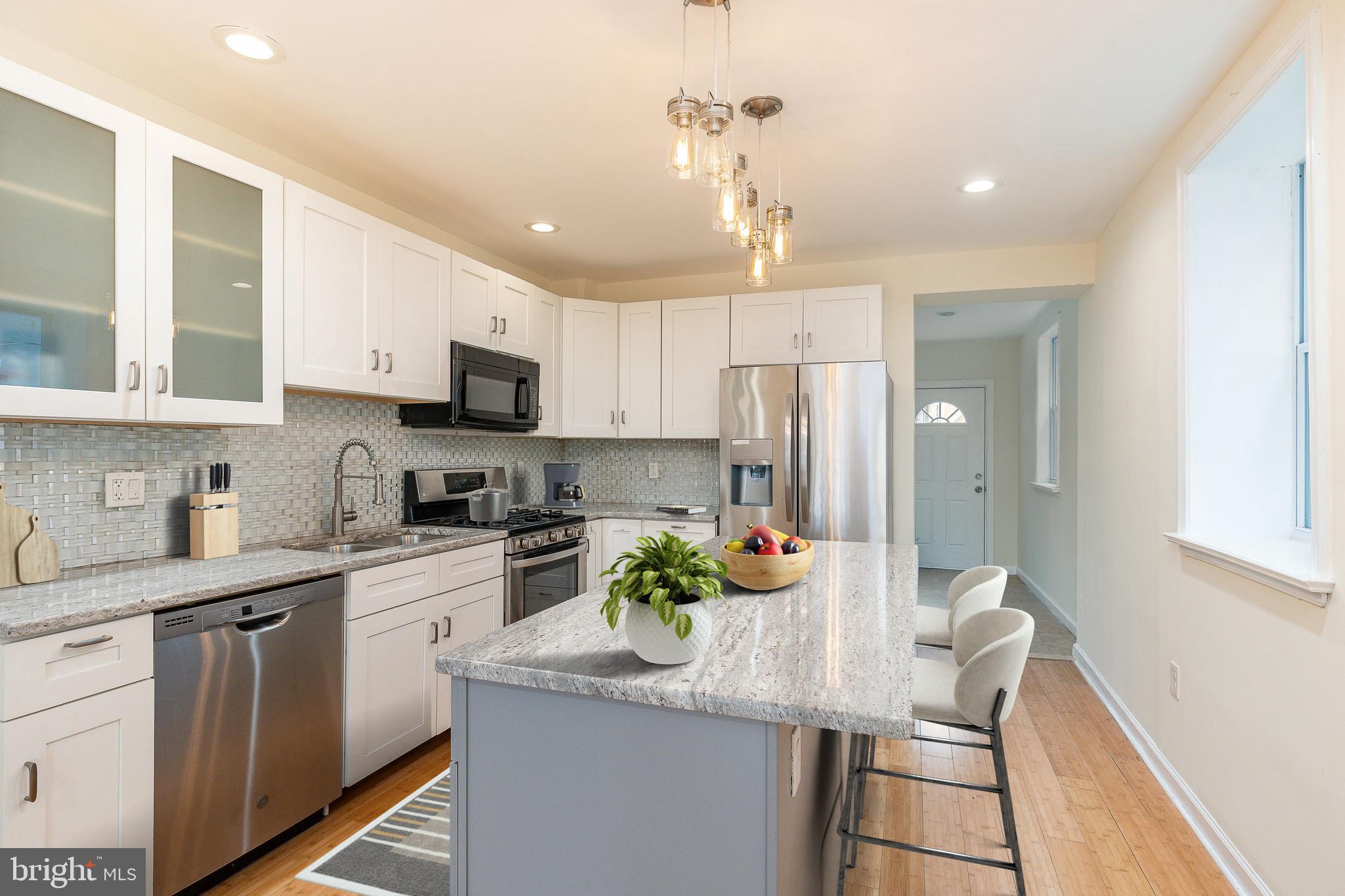 Welcome to this fully renovated 3 bedroom, 3 bathroom home located on one of Point Breeze's most inviting blocks. Offering three full levels of finished living space, this home combines modern finishes with practical design throughout. The main level features hardwood floors, recessed lighting, and an open concept layout ideal for everyday living and entertaining. The kitchen anchors the space with white shaker cabinetry, granite countertops, stainless steel appliances, a subway tile backsplash, and a spacious island with seating and pendant lighting. A full bathroom and dedicated laundry area are conveniently located toward the rear of the home. Upstairs, the primary suite offers generous closet space and a modern ensuite bathroom with a floating vanity and glass enclosed tiled shower. Two additional bedrooms provide flexibility for guests or a home office, and one offers access to a private rear deck. The finished lower level includes a third full bathroom and a versatile bonus room that can function as a den, gym, media room, or potential fourth bedroom. Mini split air conditioning systems are installed on every level, providing efficient and customizable climate control year round. The private rear yard offers a blank canvas ready for your vision, whether that means creating an urban garden, patio lounge, or low maintenance outdoor entertaining space. Located in the heart of Point Breeze, you are just minutes from neighborhood restaurants, public transportation, and convenient access to Center City, the sports complex, and the airport. Move in ready and thoughtfully updated, this home offers space, flexibility, and value in one of South Philadelphia's most dynamic neighborhoods.